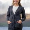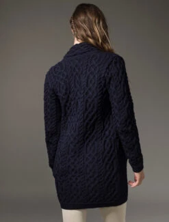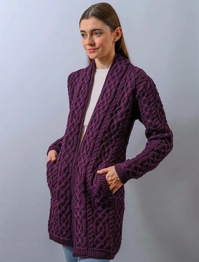 Our Merino Plated Aran Cable Knit Coat for ladies is a classically stylish garment for all seasons.