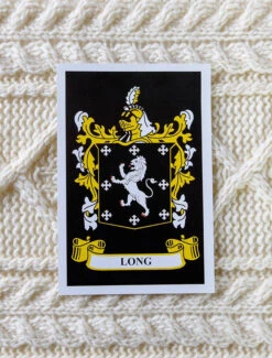 The Long Clan Aran Throw is a precious gift for any home wherein Long heritage proudly resides & will be cherished by families of the Long name for generations to come. Lovingly crafted from the finest 100% soft new wool, this Aran throw (measuring 64″ X 40″) has been created following the unique Long Clan Aran pattern.