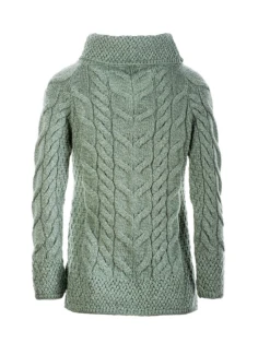 The wider collared neck design puts a modern twist on a traditional classic Aran.
