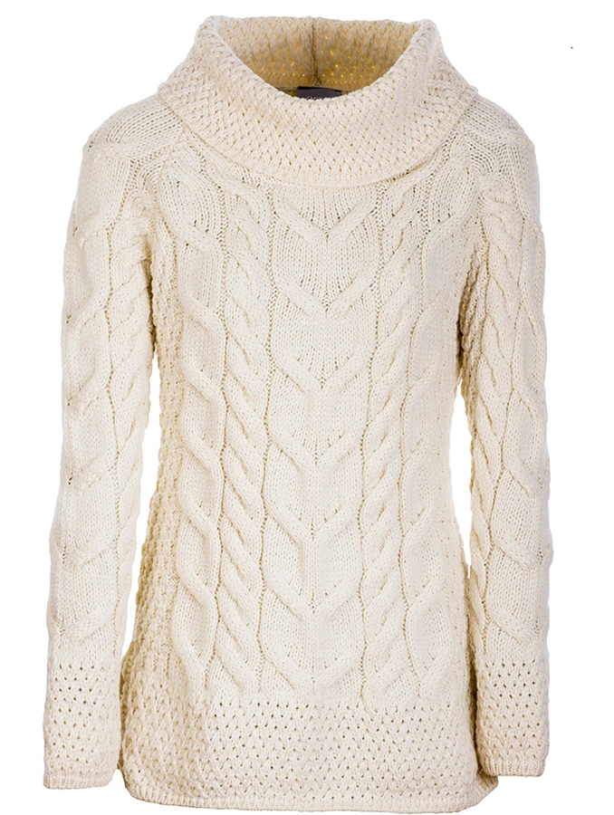 Our Luxury Chunky Cowl Neck Aran Sweater is made using extra soft 100% merino wool. Its ready to wear style makes it a fantastic piece to wear all year round with all your seasonal styles.