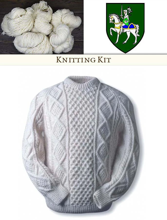 This knitting kit is comprised of the finest traditional pure new Aran Wool, together with your Family Crest, sweater history and your Maguire knitting pattern. We provide enough Aran wool to create your perfectly sized sweater plus a little extra. This Traditional Irish 100% wool is water repellent, breathable and a delight to work with. The pattern is an easy to follow design, tailored specifically to suit your exact size requirements.