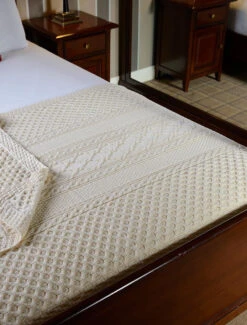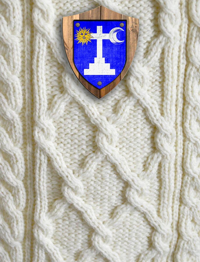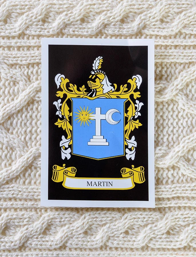 This beautiful Martin Clan Aran Throw (measuring 64″ by 40″) has been produced in the traditional bĂĄinĂn (pronounced âbaw neenâ) colour, the natural white of the wool. It comes to you complete with a clan history and crest.Â