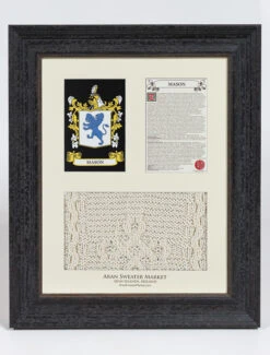 The Mason Clan Aran & History Display is a wonderful item of Mason heritage which can be proudly displayed in your home or place of work to demonstrate the pride your have in your Mason name.
