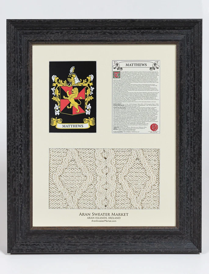 The Matthews Clan Aran & History Display is a wonderful item of Matthews heritage which can be proudly displayed in your home or place of work to demonstrate the pride your have in your Matthews name.