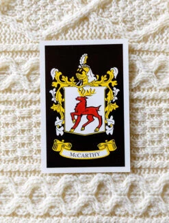 The Mc Carthy Clan Aran Throw is a precious gift for any home wherein Mc Carthy heritage proudly resides & will be cherished by families of the Mc Carthy name for generations to come. Lovingly crafted from the finest 100% soft new wool, this Aran throw (measuring 64″ X 40″) has been created following the unique Mc Carthy Clan Aran pattern.
