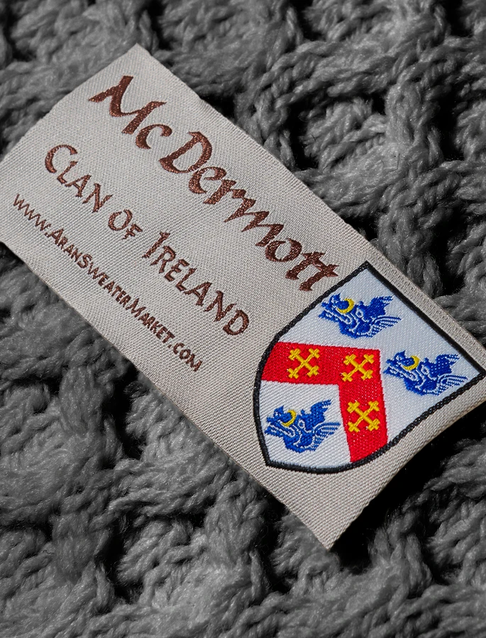 The Mc Dermott Clan Aran Scarf is a wonderful item of Mc Dermott heritage which will be cherished by the wearer for generations to come. Lovingly crafted from the finest 100% soft new wool, this Aran wool scarf has been created following the unique Mc Dermott Clan Aran pattern