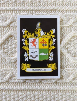 The Mc Donald Clan Aran Throw is a precious gift for any home wherein Mc Donald heritage proudly resides & will be cherished by families of the Mc Donald name for generations to come. Lovingly crafted from the finest 100% soft new wool, this Aran throw (measuring 64″ X 40″) has been created following the unique Mc Donald Clan Aran pattern.