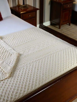 Lovingly crafted from the finest 100% soft new wool, this Aran throw (measuring 64″ X 40″) has been created following the unique Mc Donnell Clan Aran pattern.