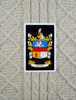 The Mc Evoy Clan Aran Throw is a precious gift for any home wherein Mc Evoy heritage proudly resides & will be cherished by families of the Mc Evoy name for generations to come. Lovingly crafted from the finest 100% soft new wool, this Aran throw (measuring 64″ X 40″) has been created following the unique Mc Evoy Clan Aran pattern.