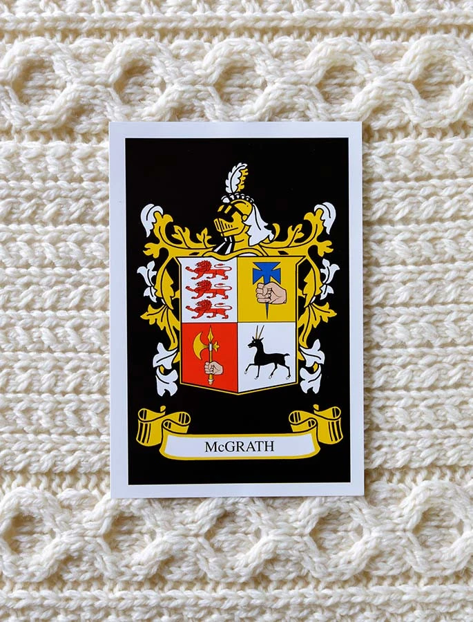 The Mc Grath Clan Aran Throw is a precious gift for any home wherein Mc Grath heritage proudly resides & will be cherished by families of the Mc Grath name for generations to come. Lovingly crafted from the finest 100% soft new wool, this Aran throw (measuring 64″ X 40″) has been created following the unique Mc Grath Clan Aran pattern.