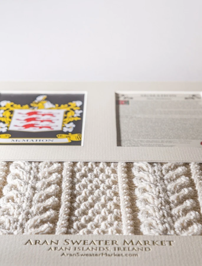 - Lovingly handcrafted & using the finest 100% soft new wool, this Mc Mahon Clan Aran & History Display has been created following the historic family pattern of your clan.