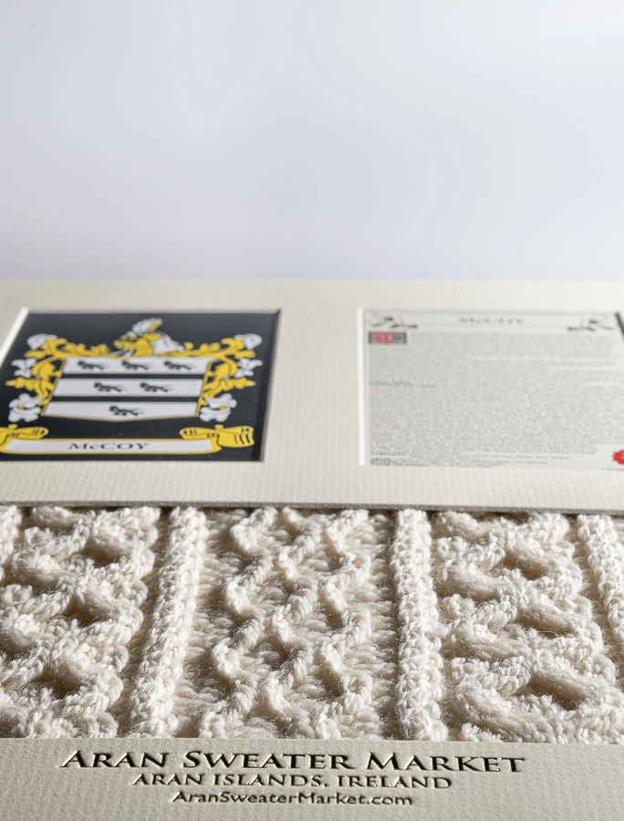 - Lovingly handcrafted & using the finest 100% soft new wool, this McCoy Clan Aran & History Display has been created following the historic family pattern of your clan.