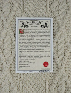 The McHugh Clan Aran Scarf is a wonderful item of McHugh heritage which will be cherished by the wearer for generations to come. Lovingly crafted from the finest 100% soft new wool, this Aran wool scarf has been created following the unique McHugh Clan Aran pattern.