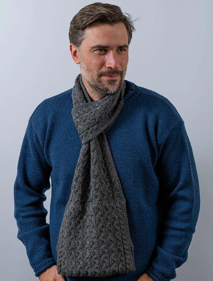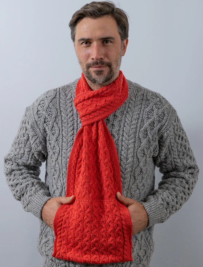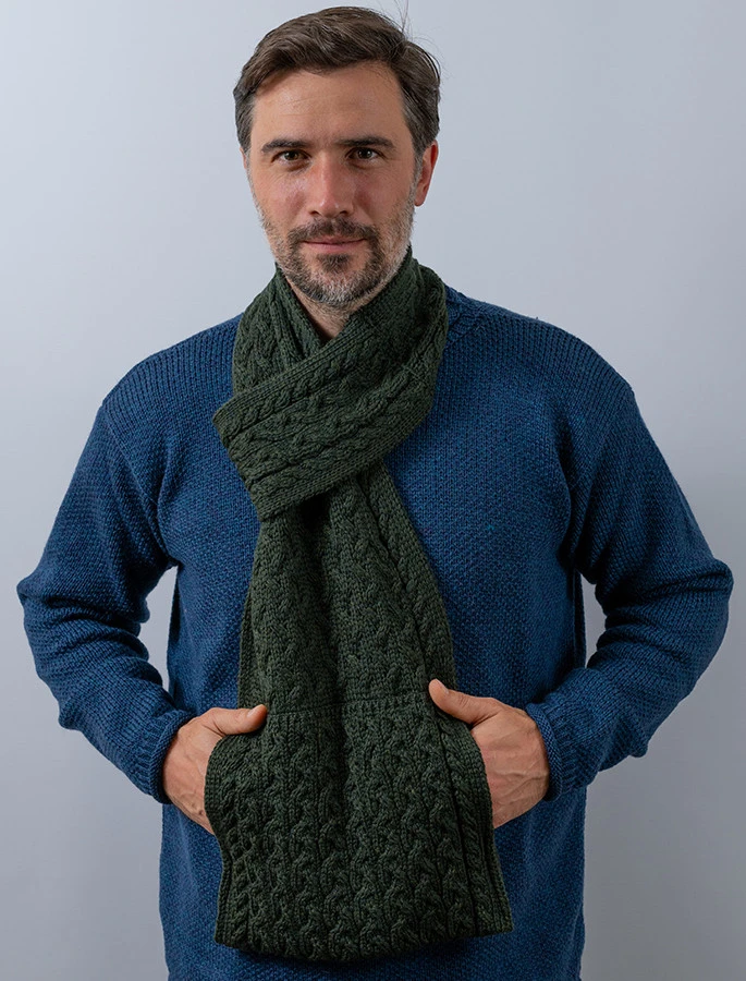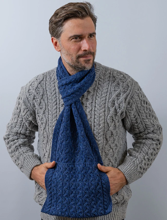 Featuring the popular cable design, it is crafted from 100% Merino Wool, is extra long & features practical pockets for extra comfort.