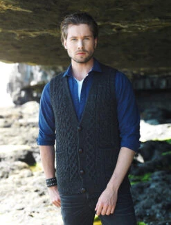Our V-Neck Wool Waistcoat is an excellent layering piece. Its features include; a textured Honeycomb and Cable Aran stitch design, pockets and leather-look buttons. Its sleeveless style also makes it the perfect Summer wardrobe staple.