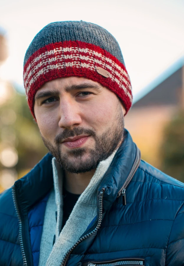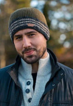 Men’s Wool Ribbed Pull-on Hat With Multi-Stripes –