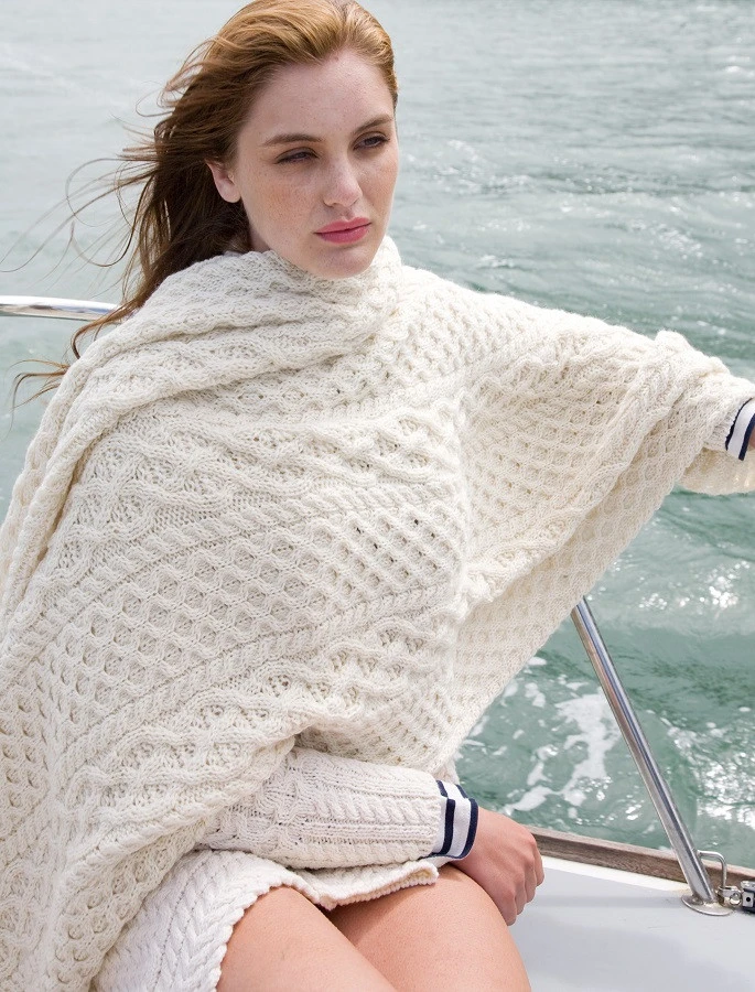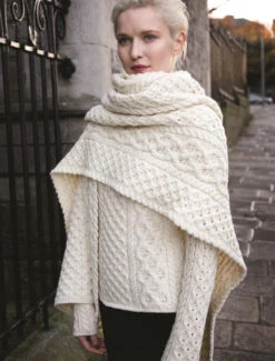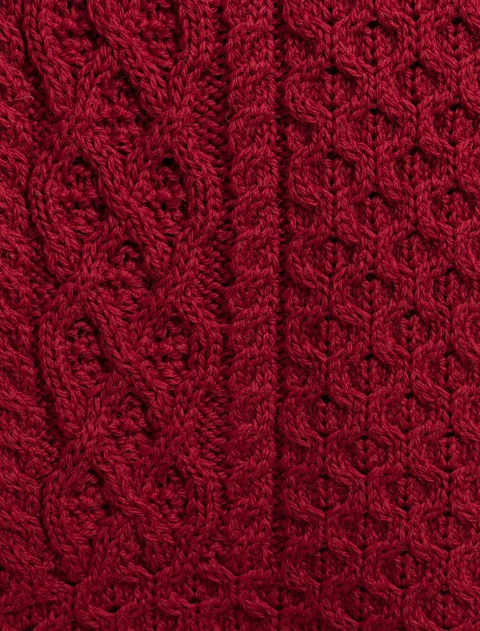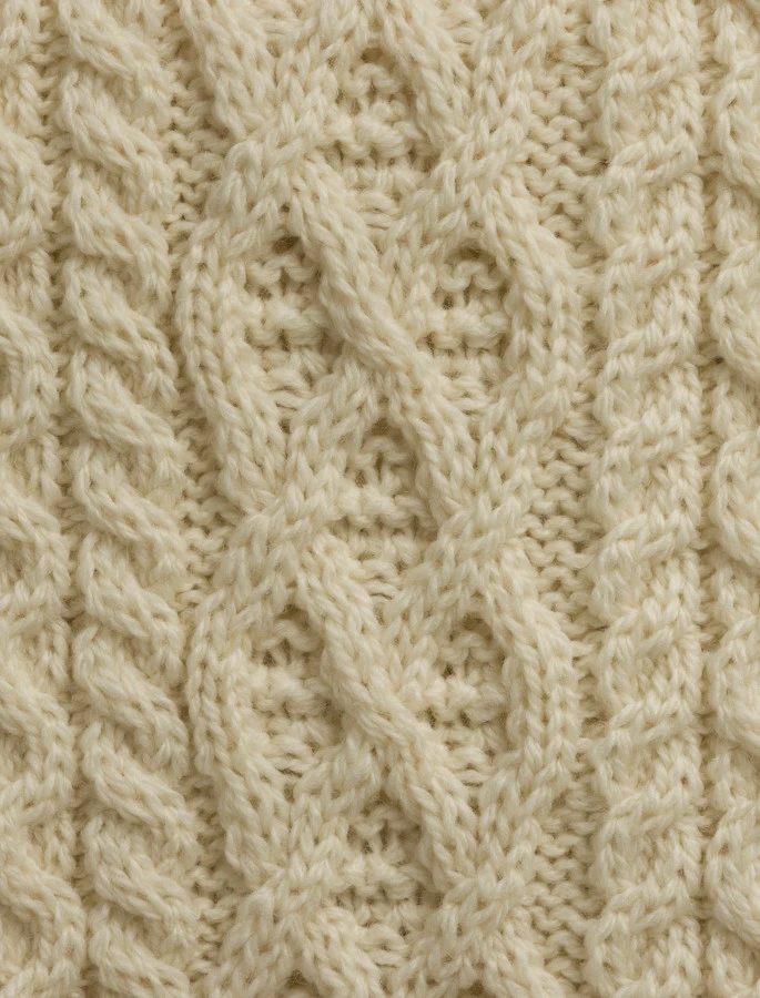- Features complex Aran stitching