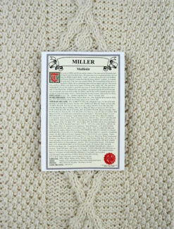 The Miller Clan Aran Throw is a precious gift for any home wherein Miller heritage proudly resides & will be cherished by families of the Miller name for generations to come. Lovingly crafted from the finest 100% soft new wool, this Aran throw (measuring 64″ X 40″) has been created following the unique Miller Clan Aran pattern.