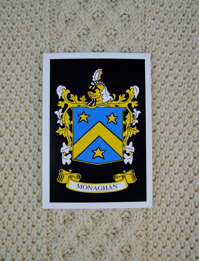The Monaghan Clan Aran Throw is a precious gift for any home wherein Monaghan heritage proudly resides & will be cherished by families of the Monaghan name for generations to come. Lovingly crafted from the finest 100% soft new wool, this Aran throw (measuring 64″ X 40″) has been created following the unique Monaghan Clan Aran pattern.