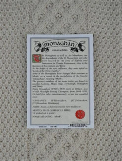 The Monaghan Clan Aran Scarf is a wonderful item of Monaghan heritage which will be cherished by the wearer for generations to come. Lovingly crafted from the finest 100% soft new wool, this Aran wool scarf has been created following the unique Monaghan Clan Aran pattern.ย