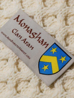 The Monaghan Clan Aran Scarf is a wonderful item of Monaghan heritage which will be cherished by the wearer for generations to come. Lovingly crafted from the finest 100% soft new wool, this Aran wool scarf has been created following the unique Monaghan Clan Aran pattern.ย