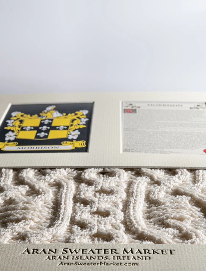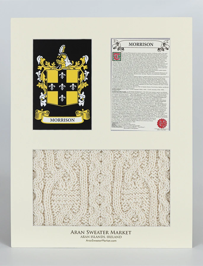 - Lovingly handcrafted & using the finest 100% soft new wool, this Morrison Clan Aran & History Display has been created following the historic family pattern of your clan.