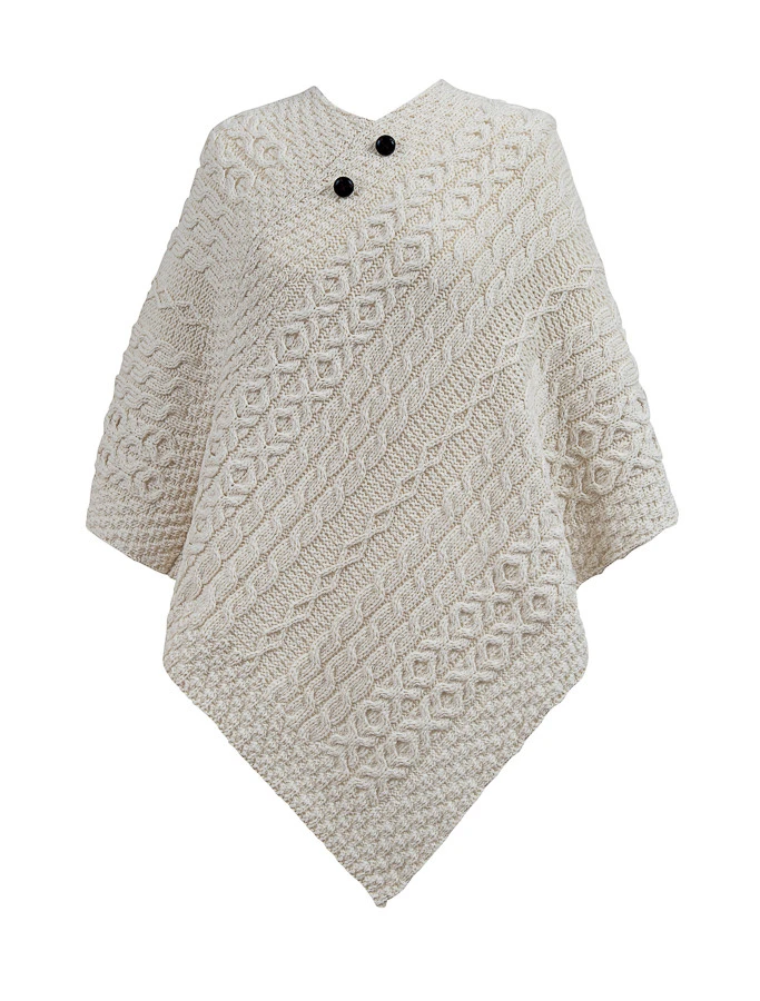 The Morrissey Clan Aran Poncho is a precious gift for anyone of Morrissey Clan heritage. Lovingly crafted from the finest 100% soft new wool, this Aran Poncho has been created following the unique Morrissey Clan Aran pattern.