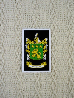 The Mulcahy Clan Aran Throw is a precious gift for any home wherein Mulcahy heritage proudly resides & will be cherished by families of the Mulcahy name for generations to come. Lovingly crafted from the finest 100% soft new wool, this Aran throw (measuring 64″ X 40″) has been created following the unique Mulcahy Clan Aran pattern.