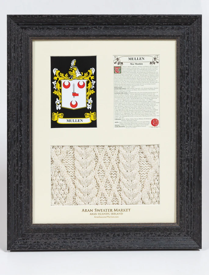 The Mullen Clan Aran & History Display is a wonderful item ofĀ Mullen heritage which can be proudly displayed in your home or place of work to demonstrate the pride your have in yourĀ Mullen name.