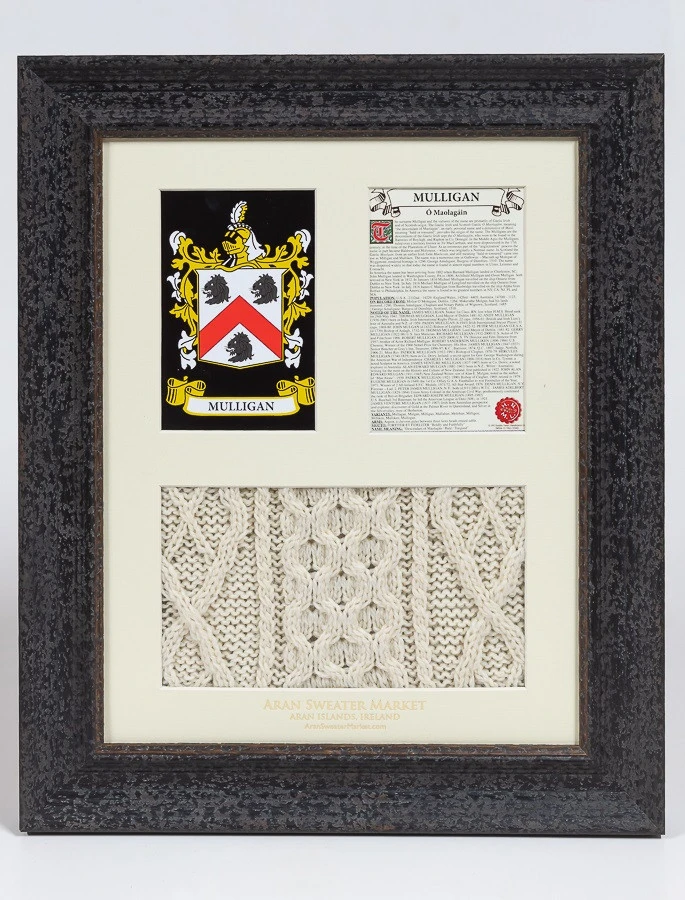 TheĀ Mulligan Clan Aran & History Display is a wonderful item ofĀ MulliganĀ heritage which can be proudly displayed in your home or place of work to demonstrate the pride your have in yourĀ Mulligan name.