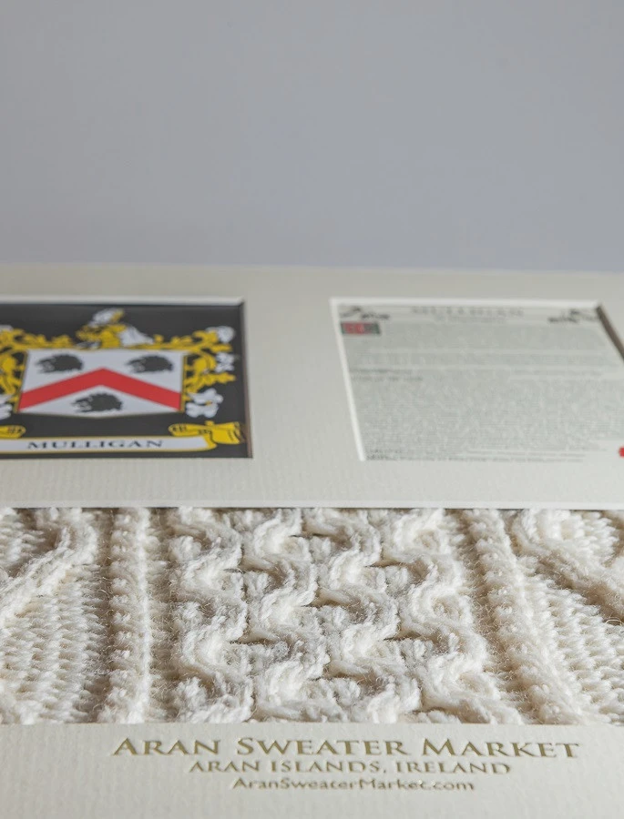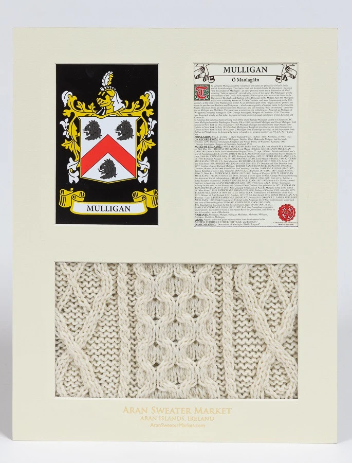 - Lovingly handcrafted & using the finest 100% soft new wool, thisĀ Mulligan Clan Aran & History Display has been created following the historic family pattern of your clan.