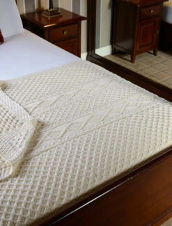 The Murphy Clan Aran Throw is a precious gift for any home wherein Murphy heritage proudly resides & will be cherished by families of the Murphy name for generations to come. Lovingly crafted from the finest 100% soft new wool, this Aran throw has been created following the unique Murphy Clan Aran pattern which features a honeycomb central panel, flanked by plait, moss-filled diamonds and moss stitch panels on either side.