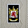 The honeycomb stitch symbolises work, and the diamonds represent a wish for wealth. This beautiful Murphy Clan Aran Throw (measuring 64″ by 40″) has been produced in the traditional báinín (pronounced ‘baw neen’) colour, the natural white of the wool. It comes to you complete with a clan history and crest.
