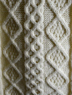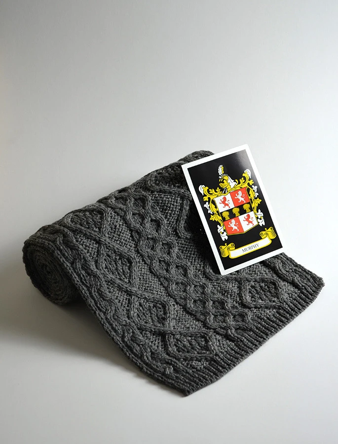 The Murphy Clan Aran Scarf is a wonderful item of Murphy heritage which will be cherished by the wearer for generations to come. Lovingly crafted from the finest 100% soft new wool, this Aran wool scarf has been created following the unique Murphy Clan Aran pattern which features a honeycomb central panel, flanked by plait, moss-filled diamonds and moss stitch panels on either side.