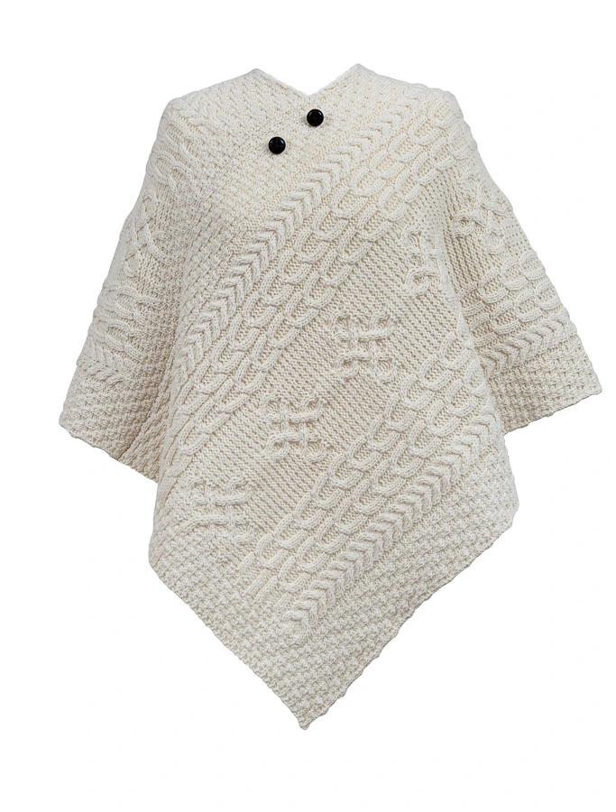 The Nelson Clan Aran Poncho is a precious gift for anyone of Nelson Clan heritage. Lovingly crafted from the finest 100% soft new wool, this Aran Poncho has been created following the unique Nelson Clan Aran pattern.