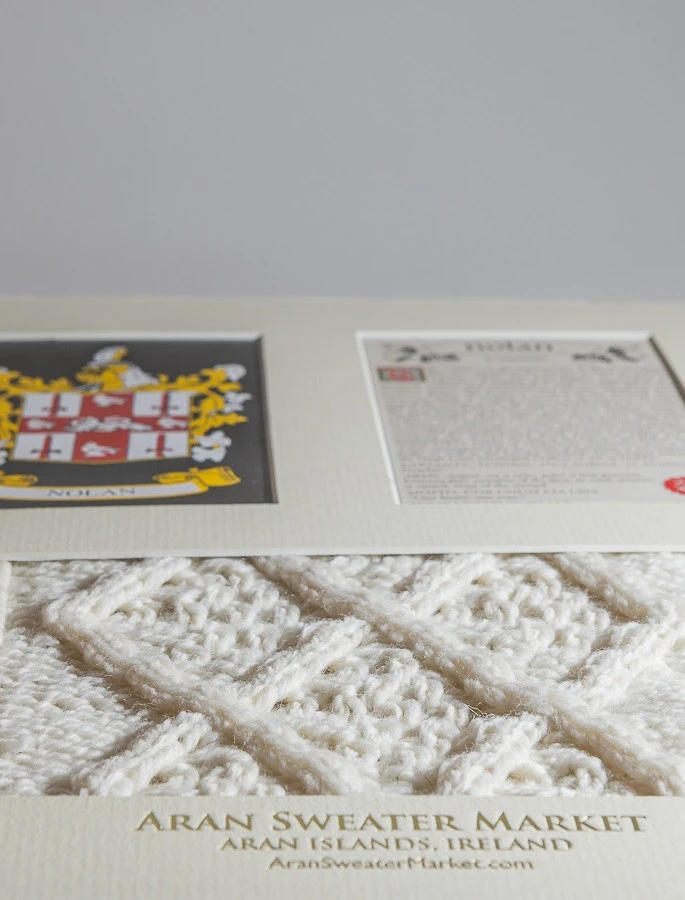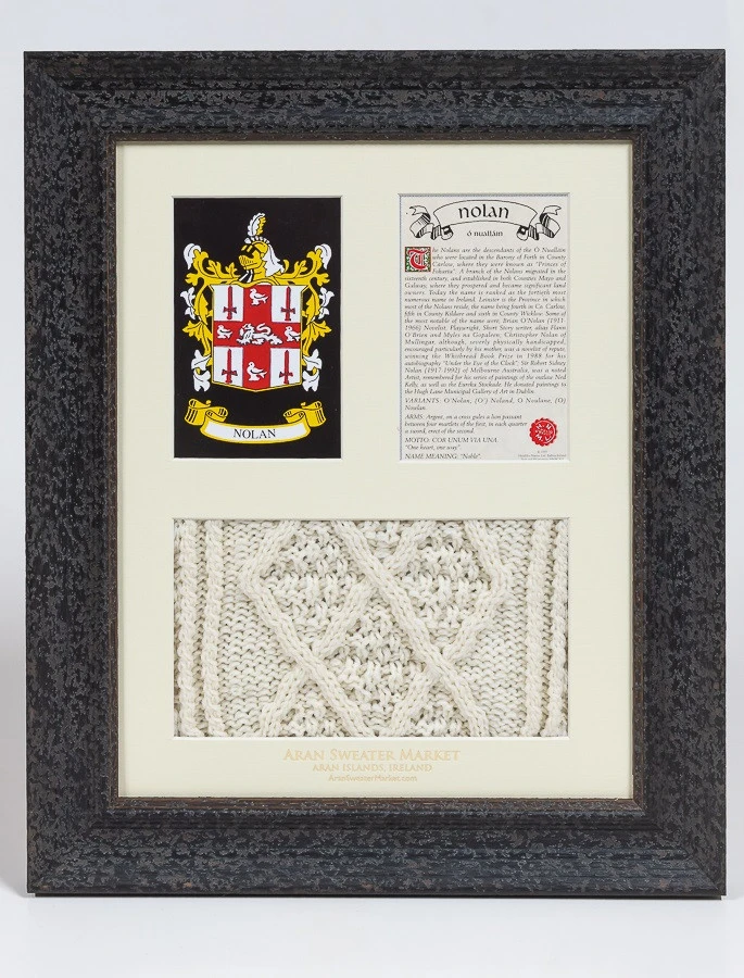The Nolan Clan Aran & History Display is a wonderful item of Nolan heritage which can be proudly displayed in your home or place of work to demonstrate the pride your have in your Nolan name.