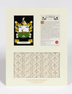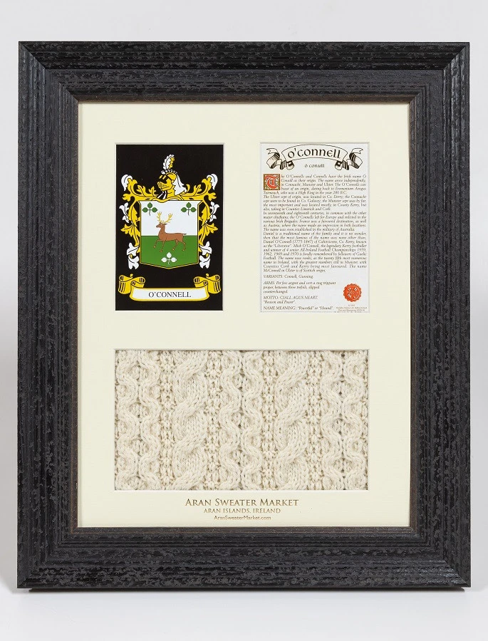 The O’Connell Clan Aran & History Display is a wonderful item of O’Connell heritage which can be proudly displayed in your home or place of work to demonstrate the pride your have in your O’Connell name.