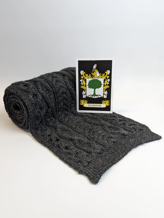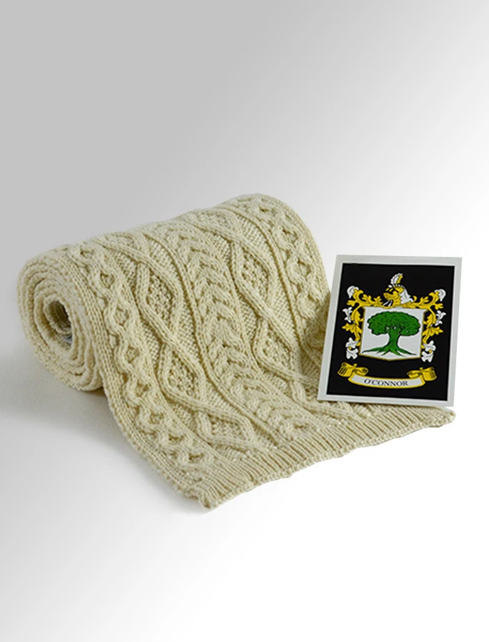 The O’ Connor Clan Aran Scarf is a wonderful item of O’ Connor heritage which will be cherished by the wearer for generations to come. Lovingly crafted from the finest 100% soft new wool, this Aran wool scarf has been created following the unique O’ Connor Clan Aran pattern.
