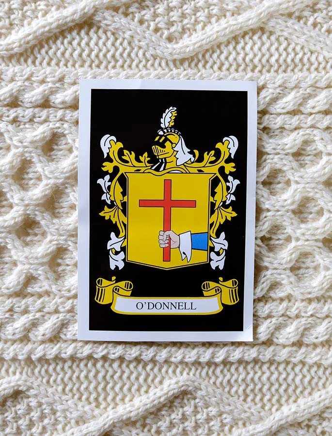 The O’Donnell Clan Aran Throw is a precious gift for any home wherein O’Donnell heritage proudly resides & will be cherished by families of the O’Donnell name for generations to come. Lovingly crafted from the finest 100% soft new wool, this Aran throw (measuring 64″ X 40″) has been created following the unique O’Donnell Clan Aran pattern.