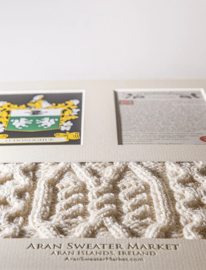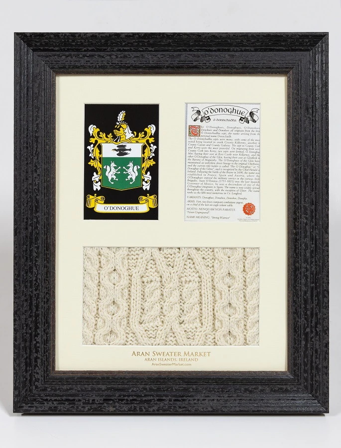 The O’Donoghue Clan Aran & History Display is a wonderful item of O’Donoghue heritage which can be proudly displayed in your home or place of work to demonstrate the pride your have in your O’Donoghue name.