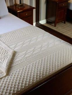 Lovingly crafted from the finest 100% soft new wool, this Aran throw (measuring 64″ X 40″) has been created following the unique O’Keeffe Clan Aran pattern.