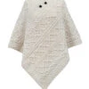 The O’ Neill Clan Aran Poncho has an unusual trellis and cable centre panel, flanked by cable, rope and moss stitches on either side. The trellis represents the stone walled fields of the Aran Islands, the cable is symbolic of good luck, and the moss symbolises nature. This beautiful Aran poncho has been knit in the traditional báinín (pronounced ‘baw neen’) colour, the natural white of the wool. It comes to you complete with a clan history and crest. It is made of 100% pure new wool, is water repellent and breathable.