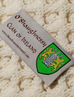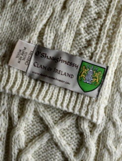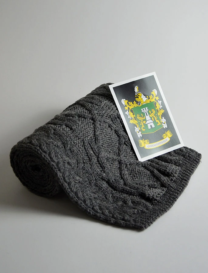 The O’Shaughnessy Clan Aran Scarf is a wonderful item of O’Shaughnessy heritage which will be cherished by the wearer for generations to come. Lovingly crafted from the finest 100% soft new wool, this Aran wool scarf has been created following the unique O’Shaughnessy Clan Aran pattern