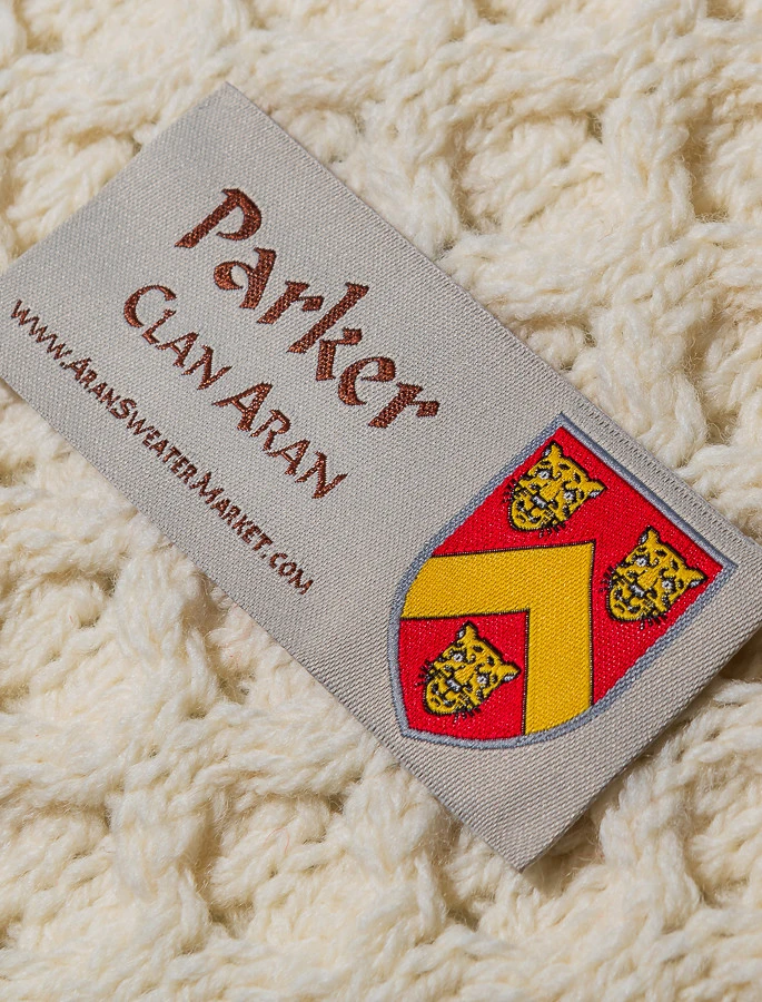 The Parker Clan Aran Throw is a precious gift for any home wherein Parker heritage proudly resides & will be cherished by families of the Parker name for generations to come. Lovingly crafted from the finest 100% soft new wool, this Aran throw (measuring 64″ X 40″) has been created following the unique Parker Clan Aran pattern.