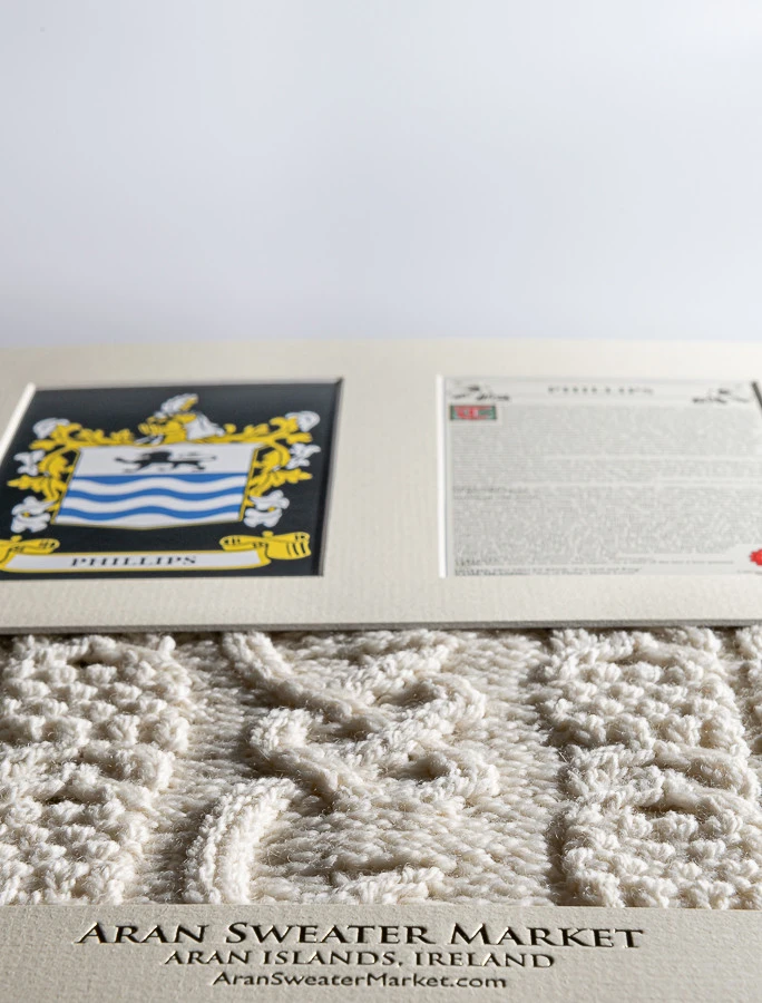 - Lovingly handcrafted & using the finest 100% soft new wool, this Phillips Clan Aran & History Display has been created following the historic family pattern of your clan.