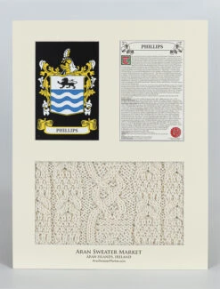 The Phillips Clan Aran & History Display is a wonderful item of Phillips heritage which can be proudly displayed in your home or place of work to demonstrate the pride your have in your Phillips name.