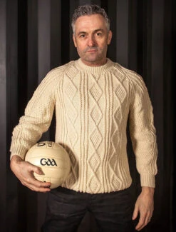 - The Cable Knit sweater for Men is made of 100% pure new wool, is water repellent and fully breathable. It has been hand crafted in the traditional Irish style, and, with care, will last a lifetime.Â