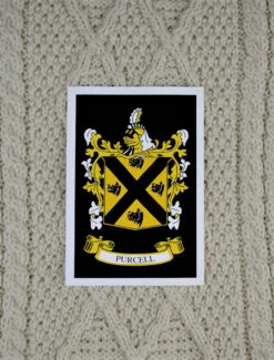 The Purcell Clan Aran Throw is a precious gift for any home wherein Purcell heritage proudly resides & will be cherished by families of the Purcell name for generations to come. Lovingly crafted from the finest 100% soft new wool, this Aran throw (measuring 64″ X 40″) has been created following the unique Purcell Clan Aran pattern.