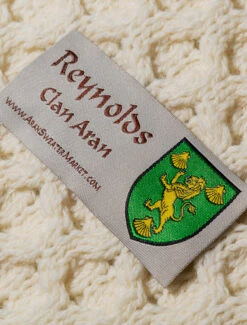 The Reynolds Clan Aran Throw is a precious gift for any home wherein Reynolds heritage proudly resides & will be cherished by families of the Reynolds name for generations to come. Lovingly crafted from the finest 100% soft new wool, this Aran throw (measuring 64″ X 40″) has been created following the unique Reynolds Clan Aran pattern.