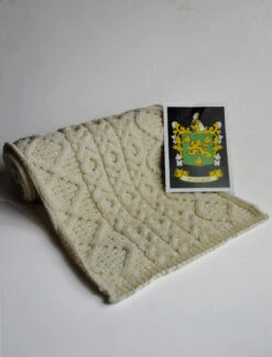 The Reynolds Clan Aran Scarf is a wonderful item of Reynolds heritage which will be cherished by the wearer for generations to come. Lovingly crafted from the finest 100% soft new wool, this Aran wool scarf has been created following the unique Reynolds Clan Aran pattern.ย